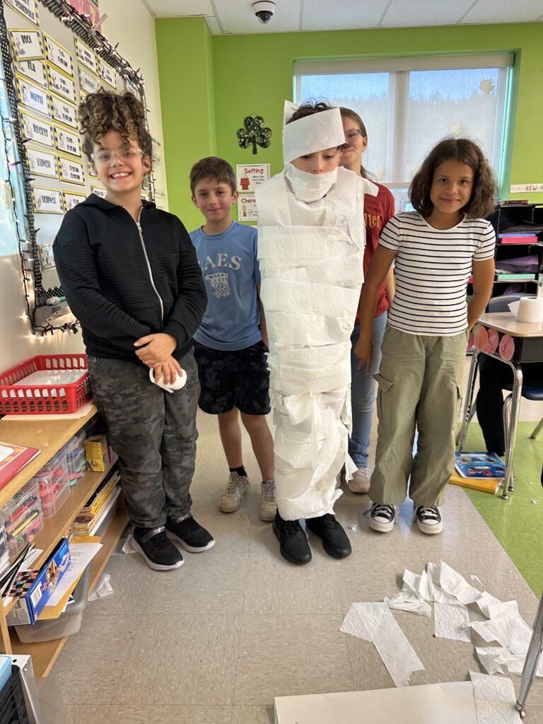 -The 5th graders have been learning about Ancient Egypt and the mummification process. Take a look at the photo below, taken in class this week!